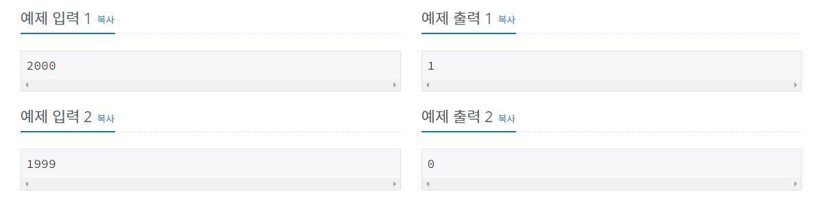 ์ถ๋ ฅ: ์ค๋ ์ด ๋ง์ผ๋ฉด 1, ์๋๋ฉด 0 ์ถ๋ ฅ.