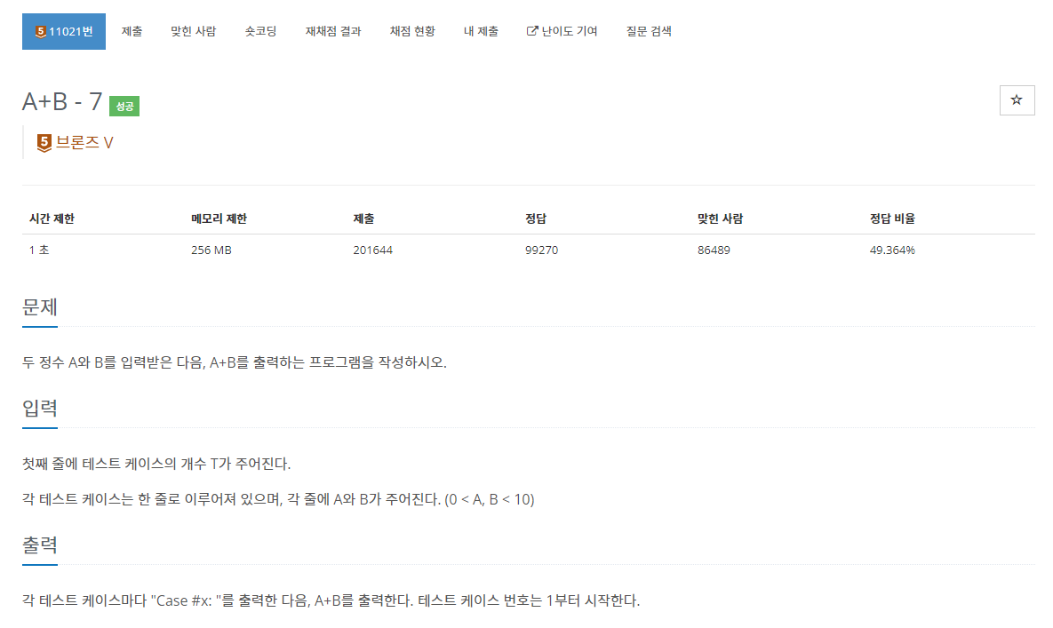 11021๋ฒ ๋ฐฑ์ค ๋จ๊ณ๋ณ ์ฝ๋ฉ - ๋ฐ๋ณต๋ฌธ : A+B - 7