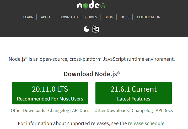 nodejs ์ค์น ์ฌ์ดํธ : https://nodejs.org/en