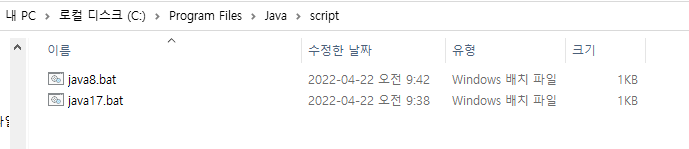 ๊ทธ ๋ค์ ๋ณํํ JDK ๊ฐฏ์๋งํผ ๋ฉ๋ชจ์ฅ์ผ๋ก .batํ์ผ์ ์์ฑ.