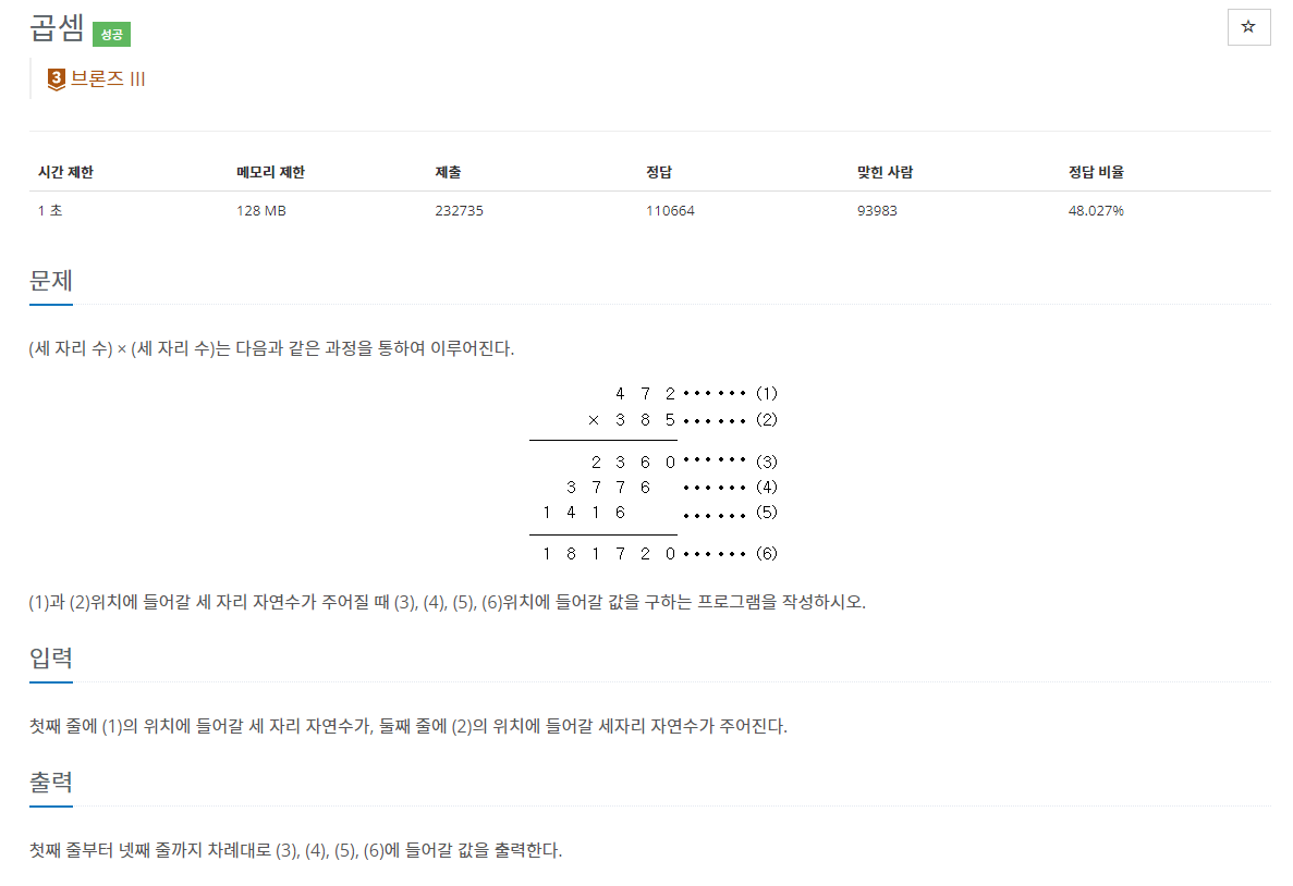 ๋ฐฑ์ค 2588๋ฒ ๋ฌธ์ ๋ ๋ฐฑ์ค ๋จ๊ณ๋ณ ์ฝ๋ฉ ์ค 1๋จ๊ณ ์ ์ถ๋ ฅ๊ณผ ์ฌ์น์ฐ์ฐ ๋ถ๋ถ์ ๋ฌธ์ ์.